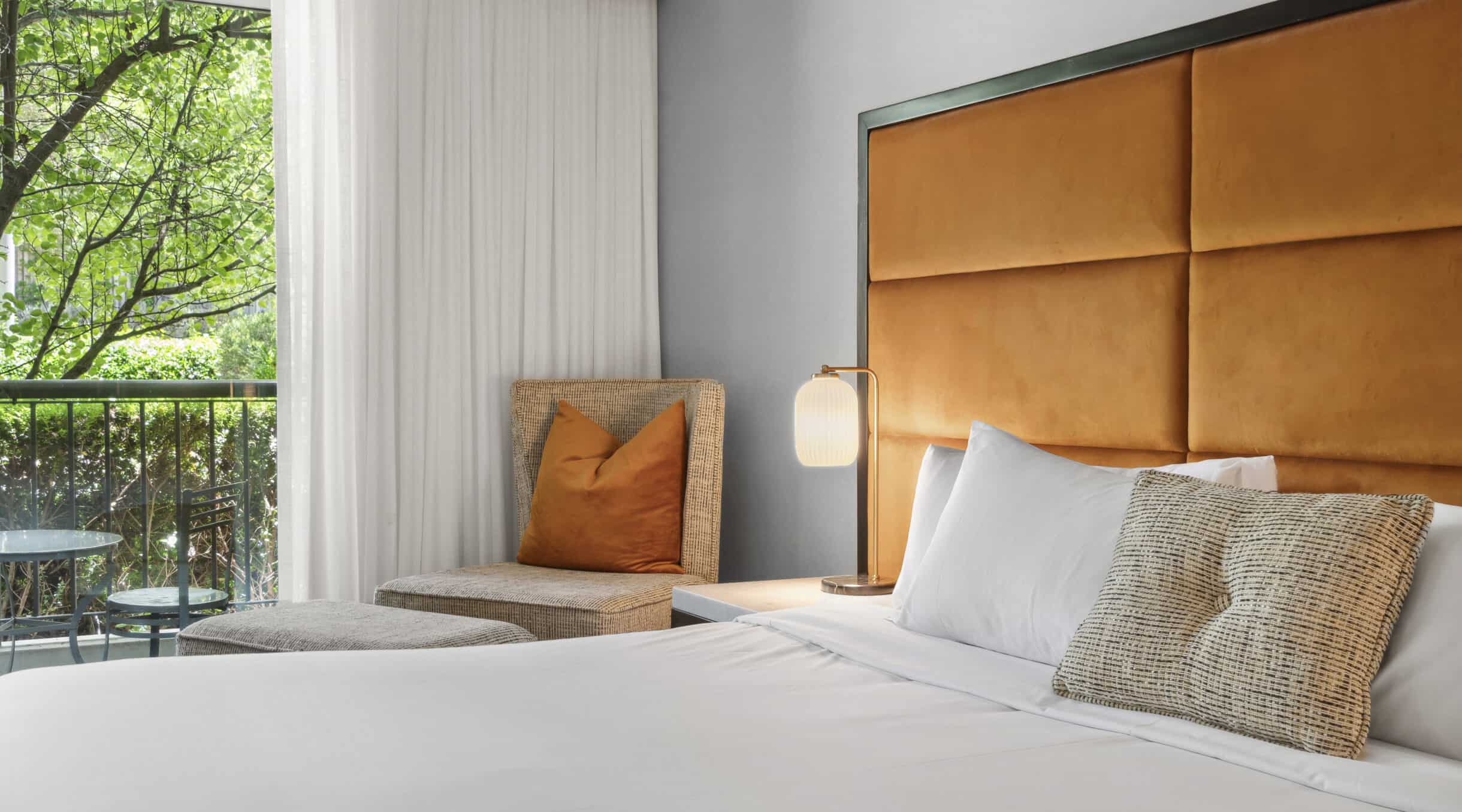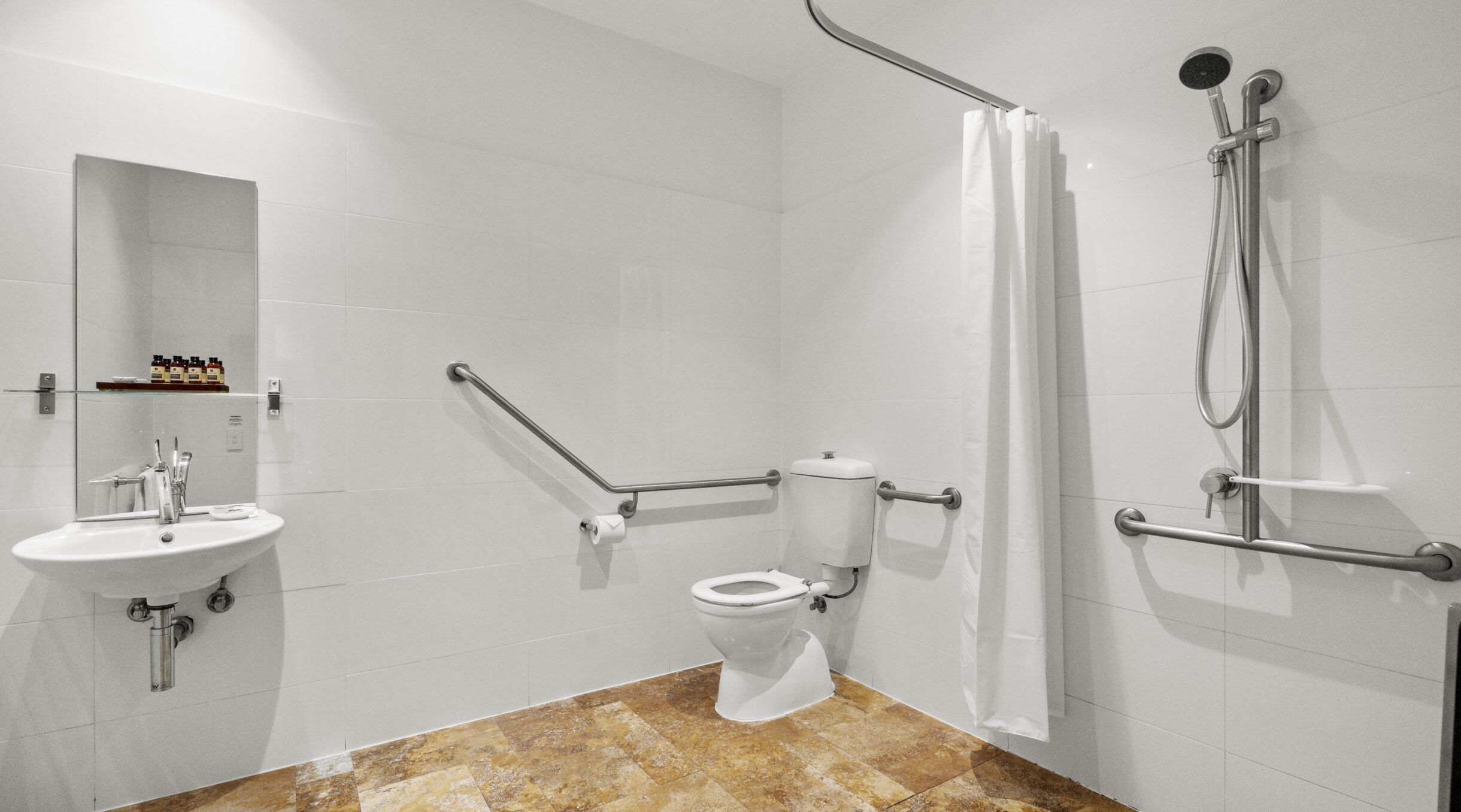 Generously sized 40 sqm and well-appointed room with a Continental King bed, modern accessible bathroom facilities, and featuring floor-to-ceiling window wall with a private balcony. Option to interconnect with our Highlands Family Suite, subject to availability. King bed can be split into two singles for a small fee.